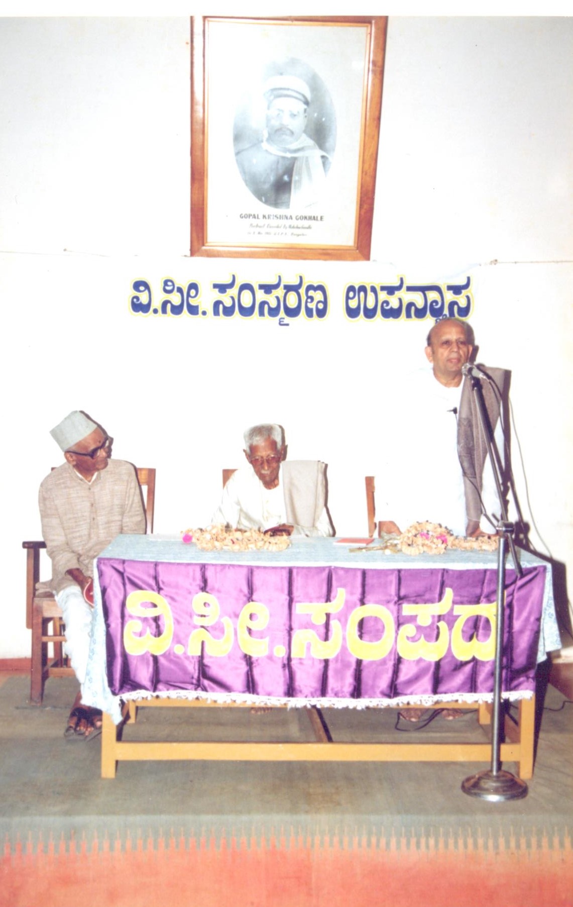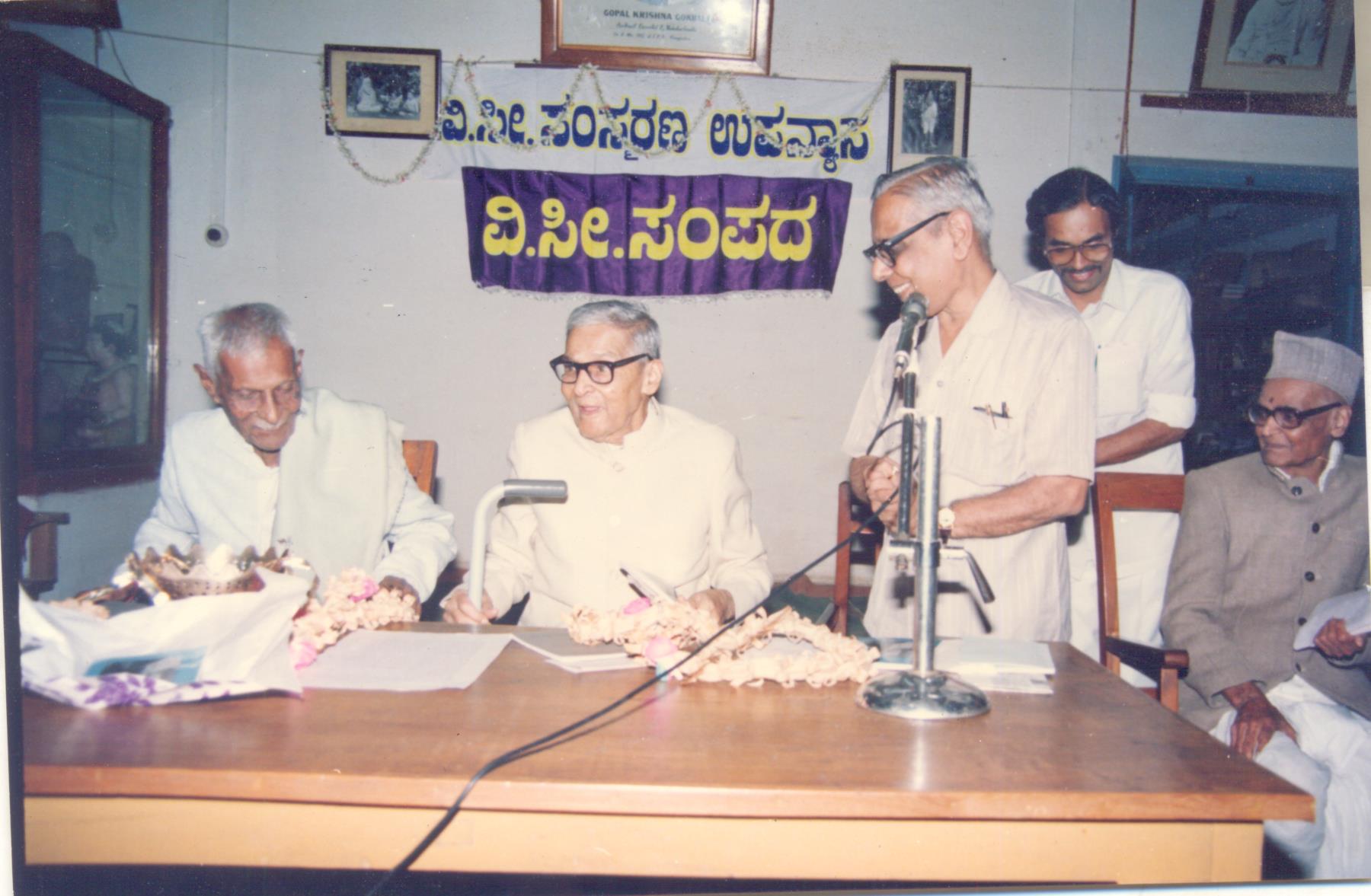 ಉಪನ್ಯಾಸಕರು (ಬಲದಿಂದ ಎಡಕ್ಕೆ): ಪ್ರೊ ಸಾ.ಕೃ. ರಾಮಚಂದ್ರರಾವ್, ಅಧ್ಯಕ್ಷರಾಗಿ: ಶ್ರೀ ನಿಟ್ಟೂರು ಶ್ರೀನಿವಾಸರಾವ್, ಸಂಪದದ ಅಧ್ಯಕ್ಷ: ಶ್ರೀ ಪಿ.ವಿ. ಜೋಶಿ